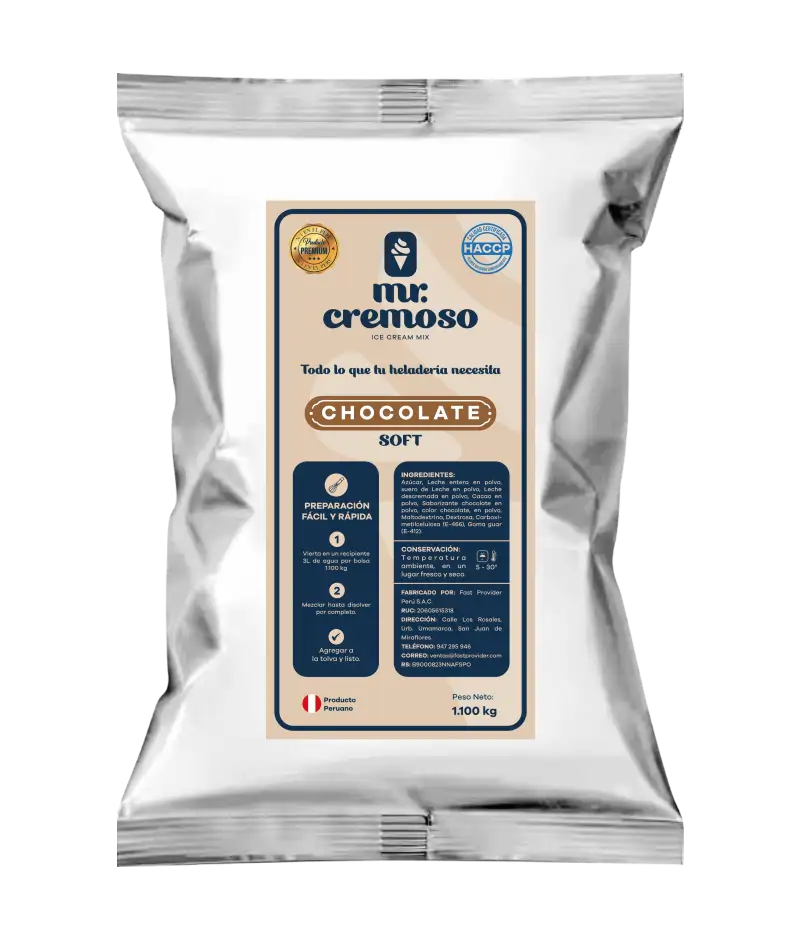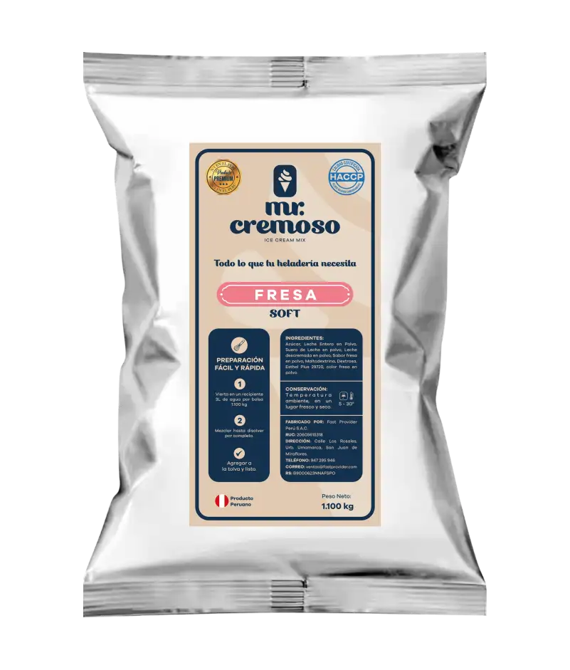 Base de helado compatible con cualquier maquina de helado soft, de fácil preparado: Solo requiere 3 Litros de agua bebible, licuarlo sin dejar grumos y listo! Cada bolsa te puede rendir hasta 60 conos.